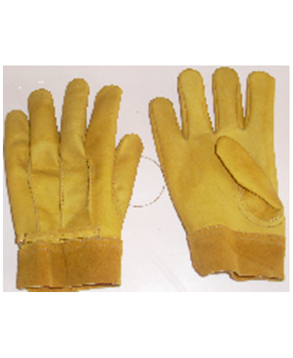 Fabricados en piel suave de res de 1.5 mm mínimo de espesor, sin refuerzo, resistentes, en color miel o arena, con correa para sujetar la parte posterior del mismo, con lafinalidad de no permitir el paso de brasas y piedras, dichos guantes deberán ser flexibles