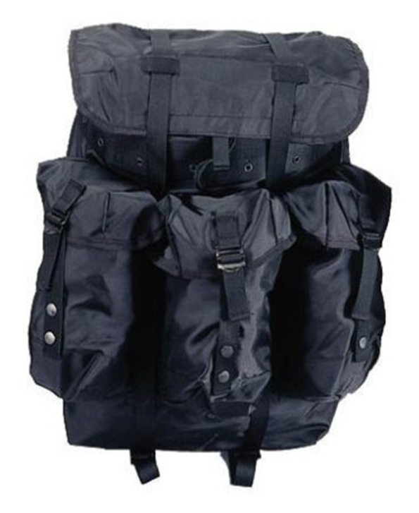 • Fabricada en loneta poliéster plastificada denier 100 • Capacidad de 55 litros. • Medidas: 50 cm de largo x 35 cm de ancho x 16 cm de profundidad. • Peso Aproximado 900 grs. • Cintas de Nylon Poliamida 100% • Forma Comando • Diseño militar con 3 bolsas exteriores y bolsa en la tapa • Capacidad de carga de 15 – 20 Kgs • Herraje poliéster de alto impacto • Broches de presión metálicos • Espalda y tirantes acojinados • Cordones de Nylon 100%.